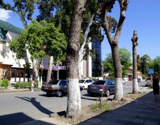 Поездом или самолетом до г. Сочи (Адлер), далее на общественном транспорте или на такси до «Казачьего рынка» (8 км от ж/д вокзала, 15 км от аэропорта), затем пройти пешком около 500 м до пограничного поста на р. Псоу до границы России и Абхазии. После самостоятельного прохождения паспортного и таможенного контроля до места отдыха можно доехать на автобусе, маршрутном такси или воспользоваться услугами частных водителей.