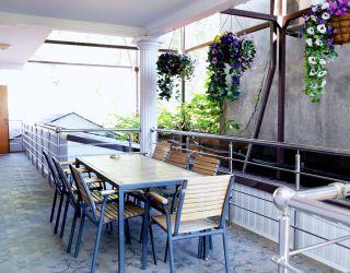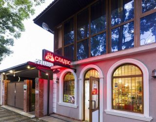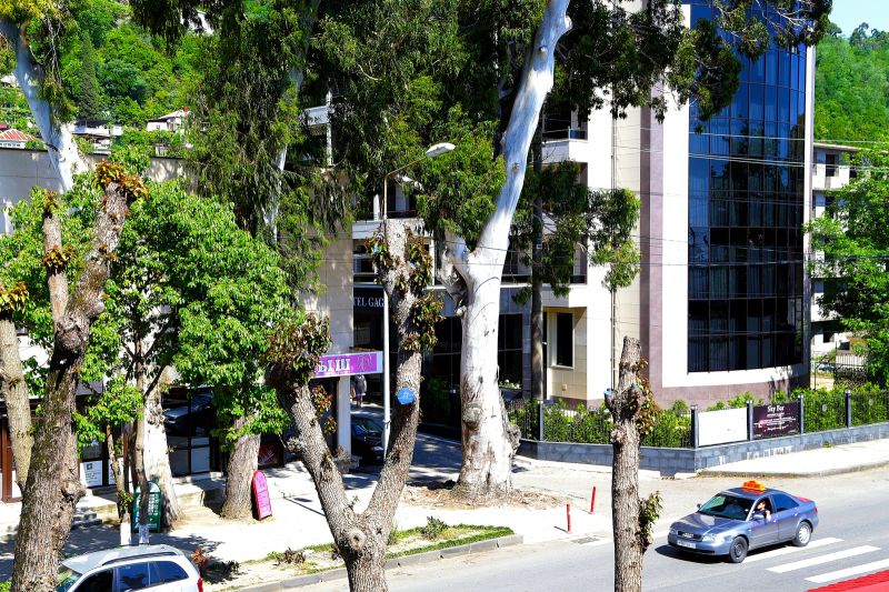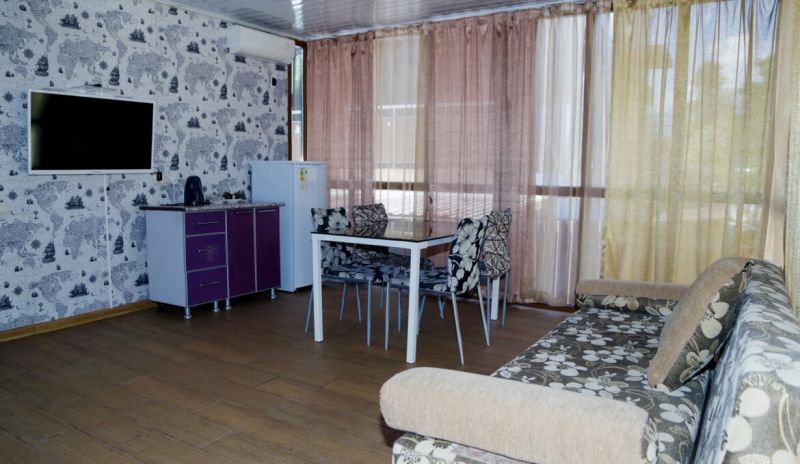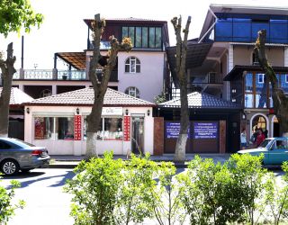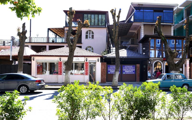 На первом этаже работает небольшой магазин, во дворе организована барбекю зона, есть открытая терраса со столиками. В двух минутах ходьбы расположен городской пляж. На мелко-галечном побережье для отдыхающих установлены раздевалки, есть лежаки и навесы от солнца.