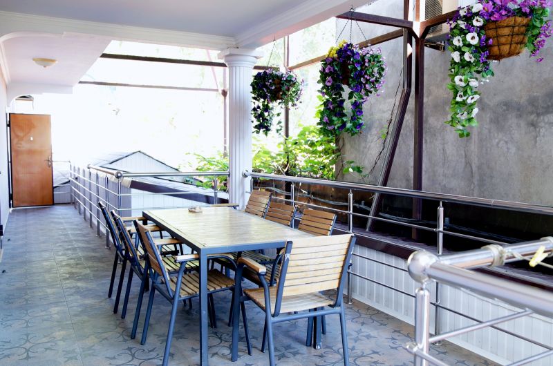 4-этажное здание гостевого дома занимает небольшую благоустроенную территорию с зеленым внутренним двориком. Гостей ожидают 19 номеров, в категориях полулюкс и люкс имеются санузел с душем, кондиционер, телевизор, беспроводной интернет, в некоторых предусмотрена мини-кухня. В номерах категории стандарт санузел и душевые расположены на этаже.